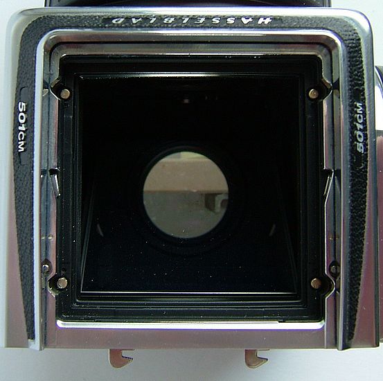 Blick von oben in das Gehäuse bei entfernter Mattscheibe
