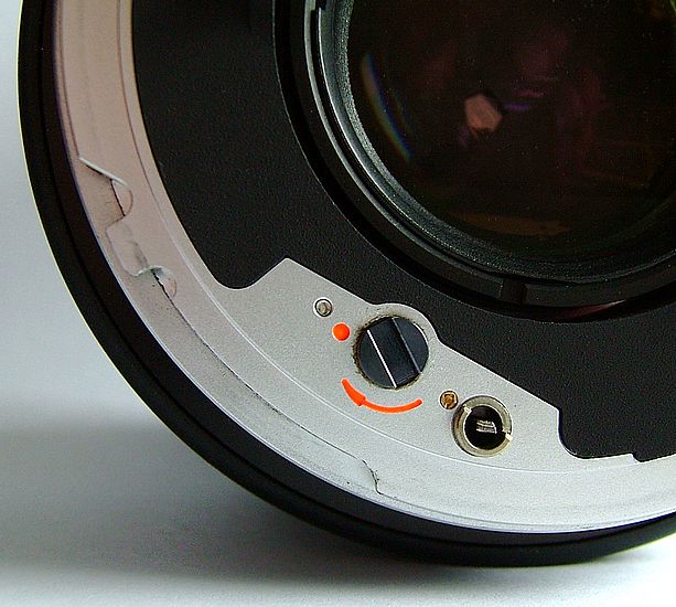 Wenn das Objektiv nicht gespannt ist, zeigt der Schlitz der Welle nicht auf den roten Punkt. Versuchen Sie nicht, das Objektiv in diesem Zustand an die Kamera anzusetzen!
