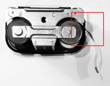 Dieses Bild zeigt nochmals, wie herum der Film eingelegt sein muss. Wenn Sie ihn anders herum einlegen belichten Sie nur das Schutzpapier ...