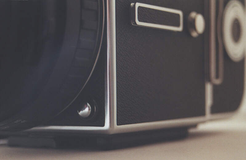 Vorderseite unten rechts: Entriegelungsknopf für das Objektiv-Bajonett.