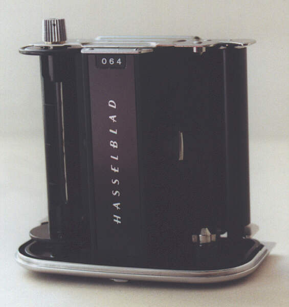 Dies ist der Einsatz des A12-Magazins. Zum Laden des Films wird er komplett herausgenommen. Die drei Ziffern auf dem Einsatz (hier: 064) müssen mit den letzten drei Ziffern der Serien-Nummer des Magazins identisch sein, denn Magazin und Einsatz sind ab Werk genau aufeinander einjustiert.